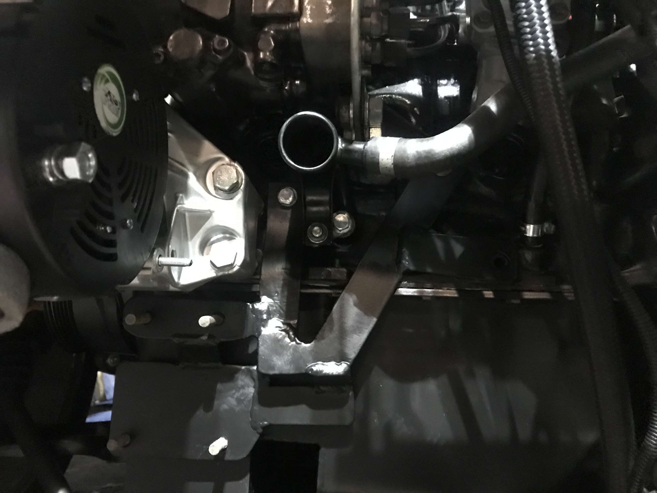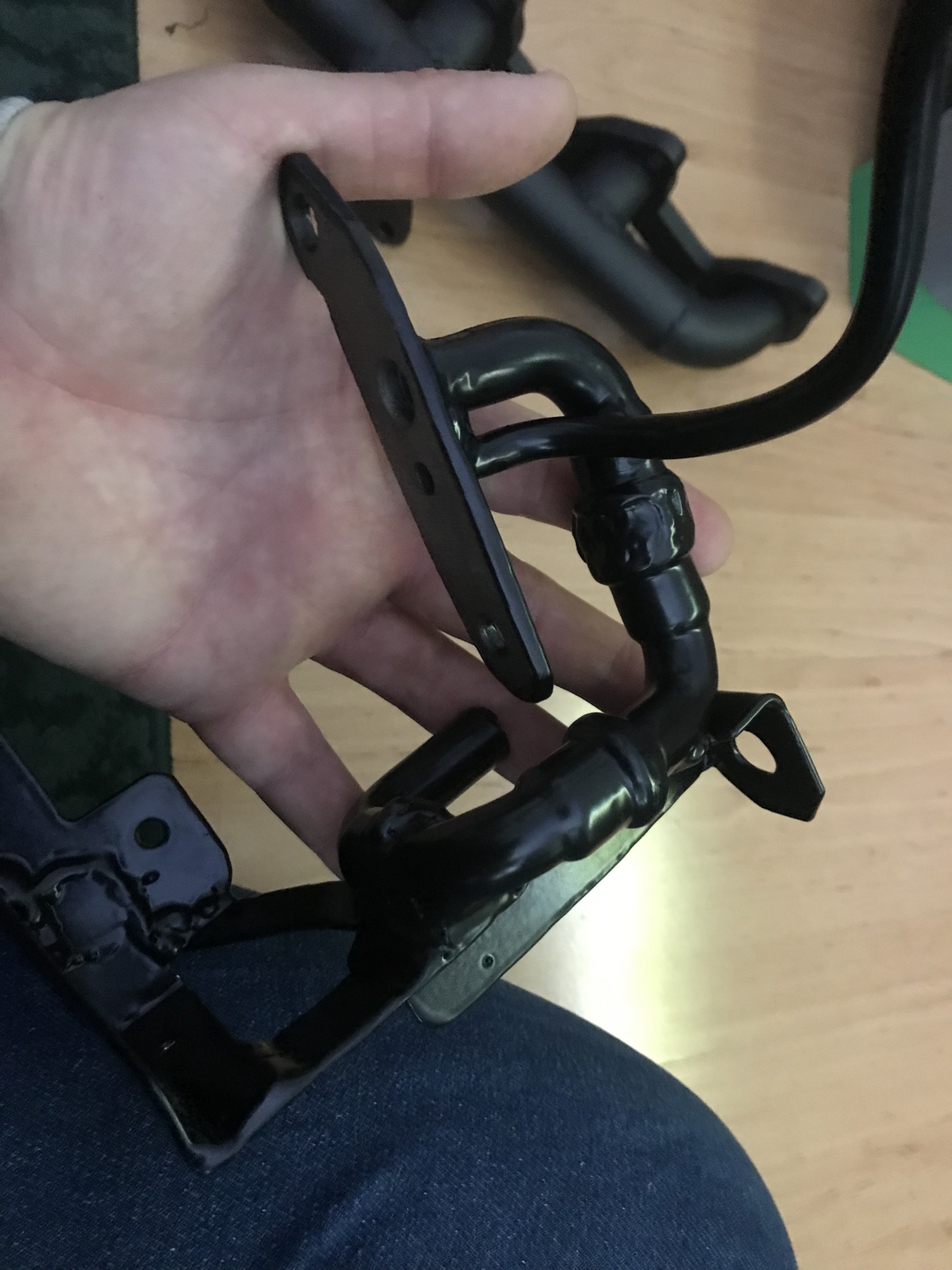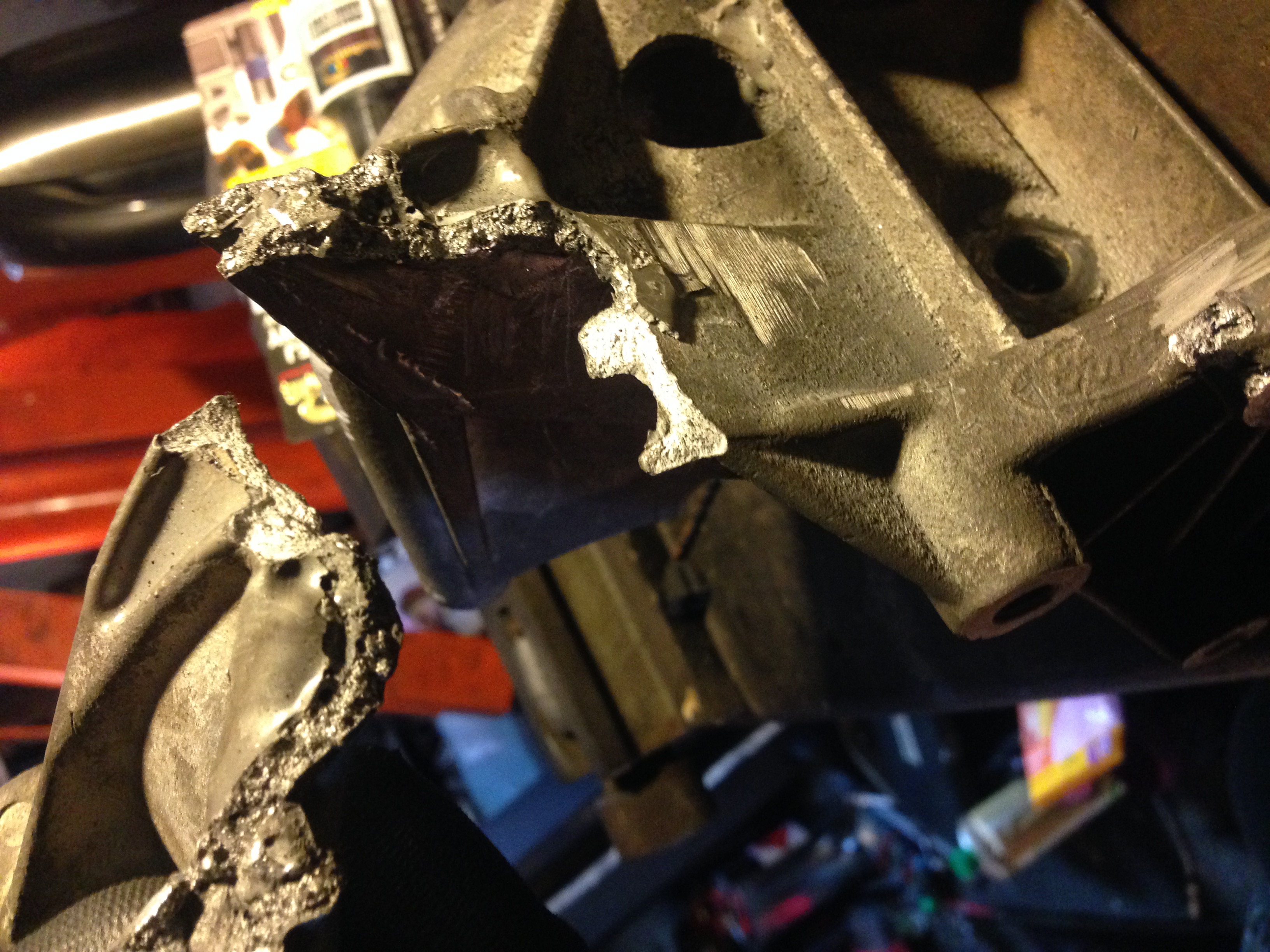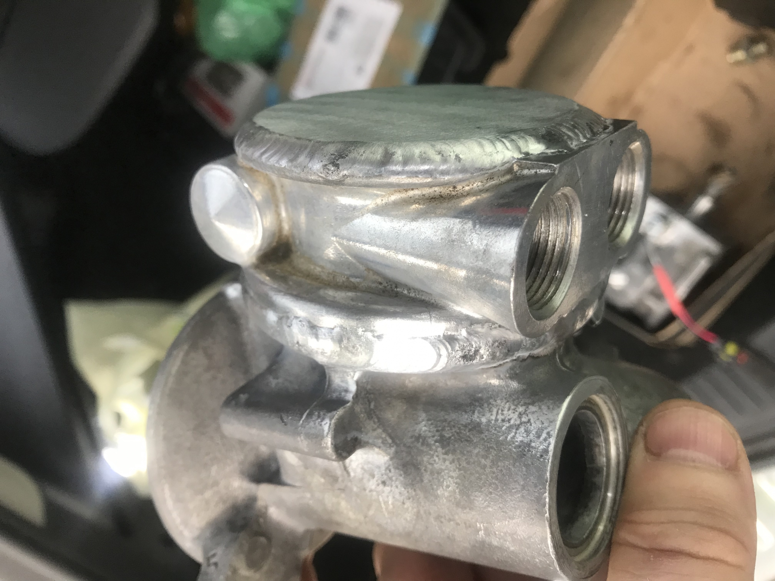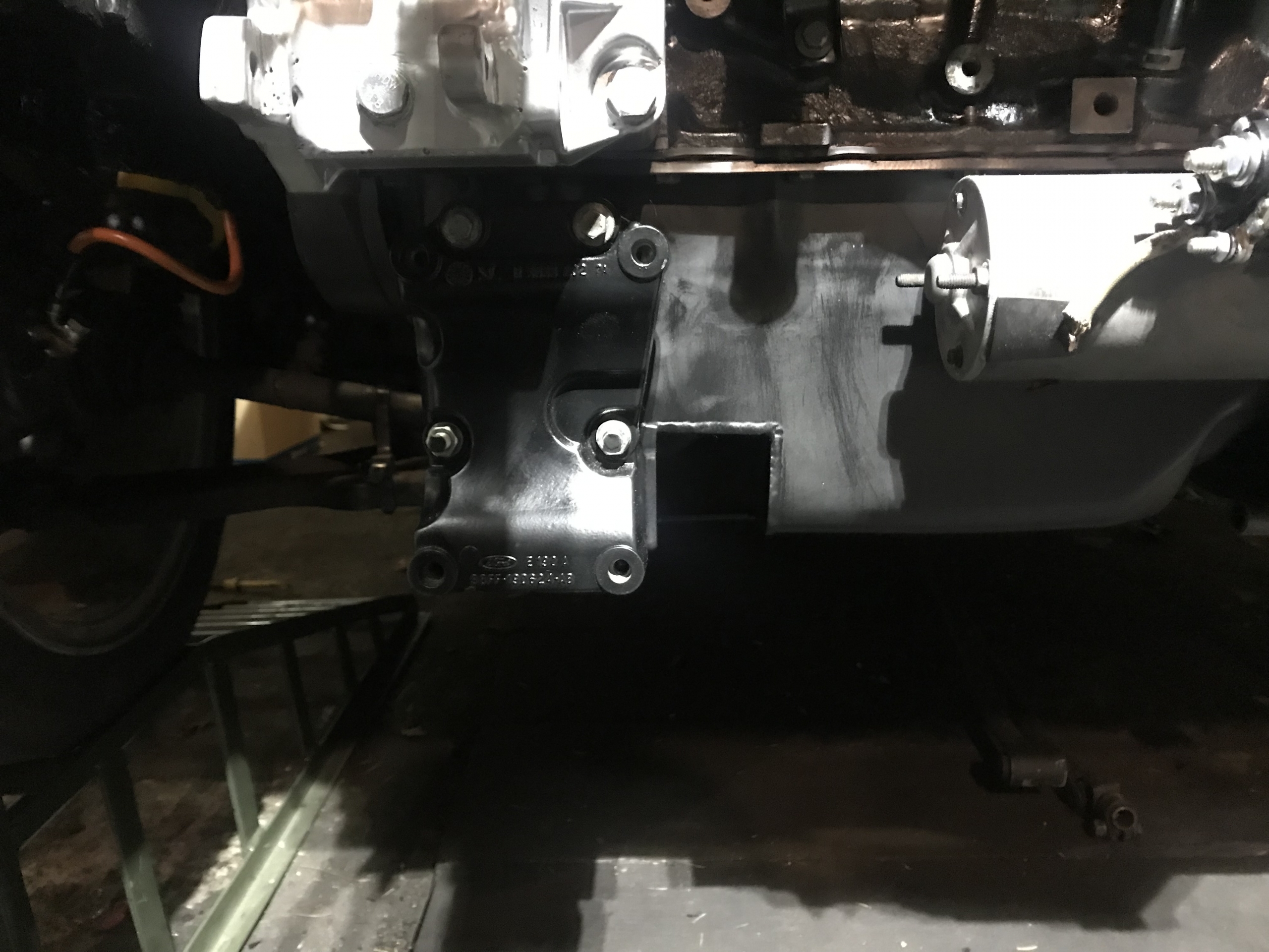 Oczywiście flansza do turbo z kawałkiem wydechu, też wyspawana od nowa, jest tam widoczny wspornik podtrzymujący rurę do bloku silnika, tak by zminimalizować naprężenia od wydechu idące na turbo: