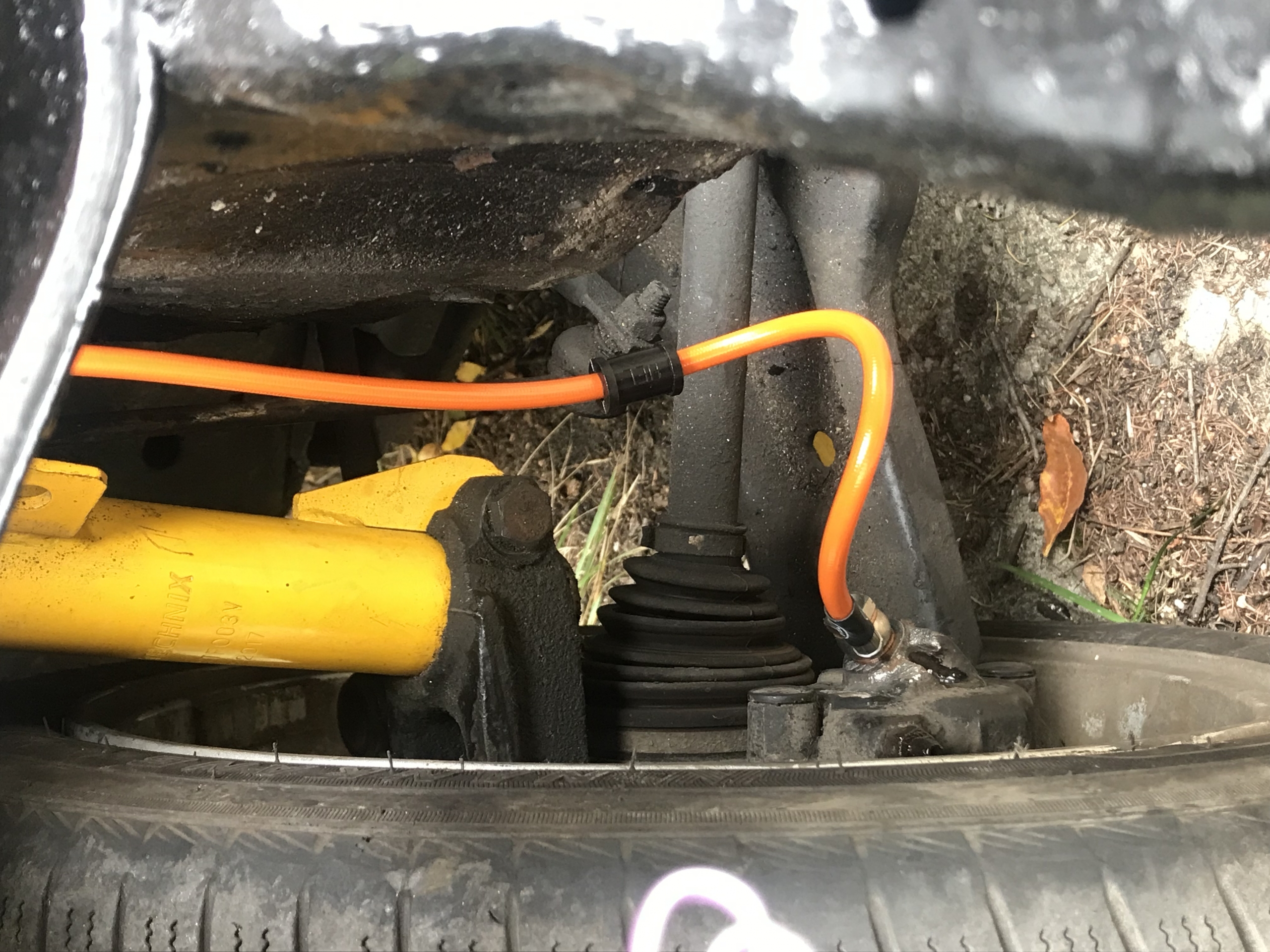 Linki poszły dołem, pod autem, i zostały przewleczone nad sankami, jest tam wystarczająco dużo miejsca obok przewodów paliwowych i hamulcowych: