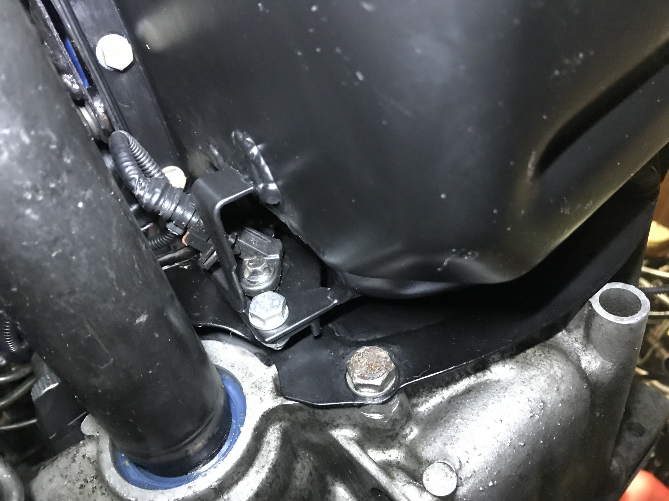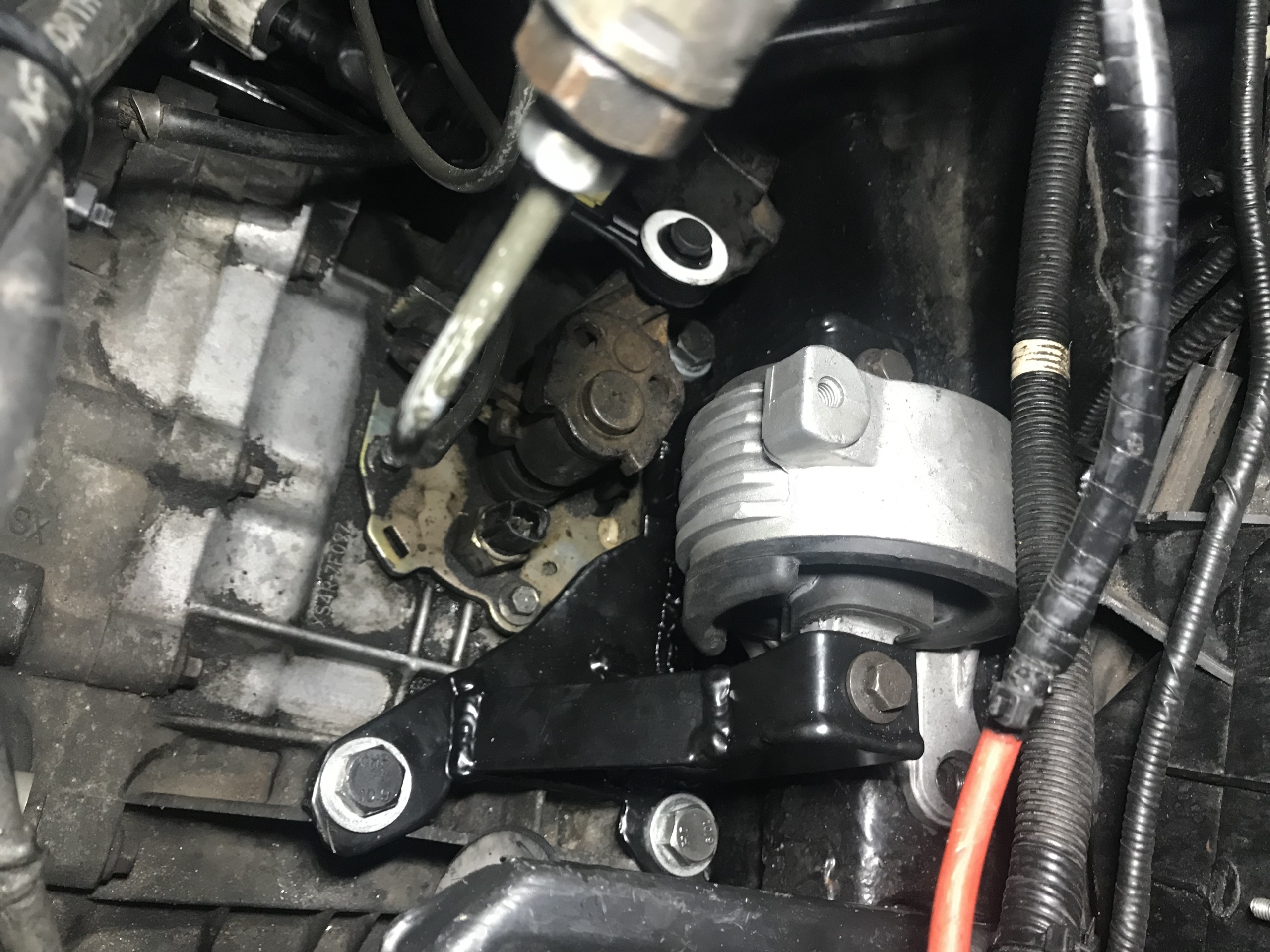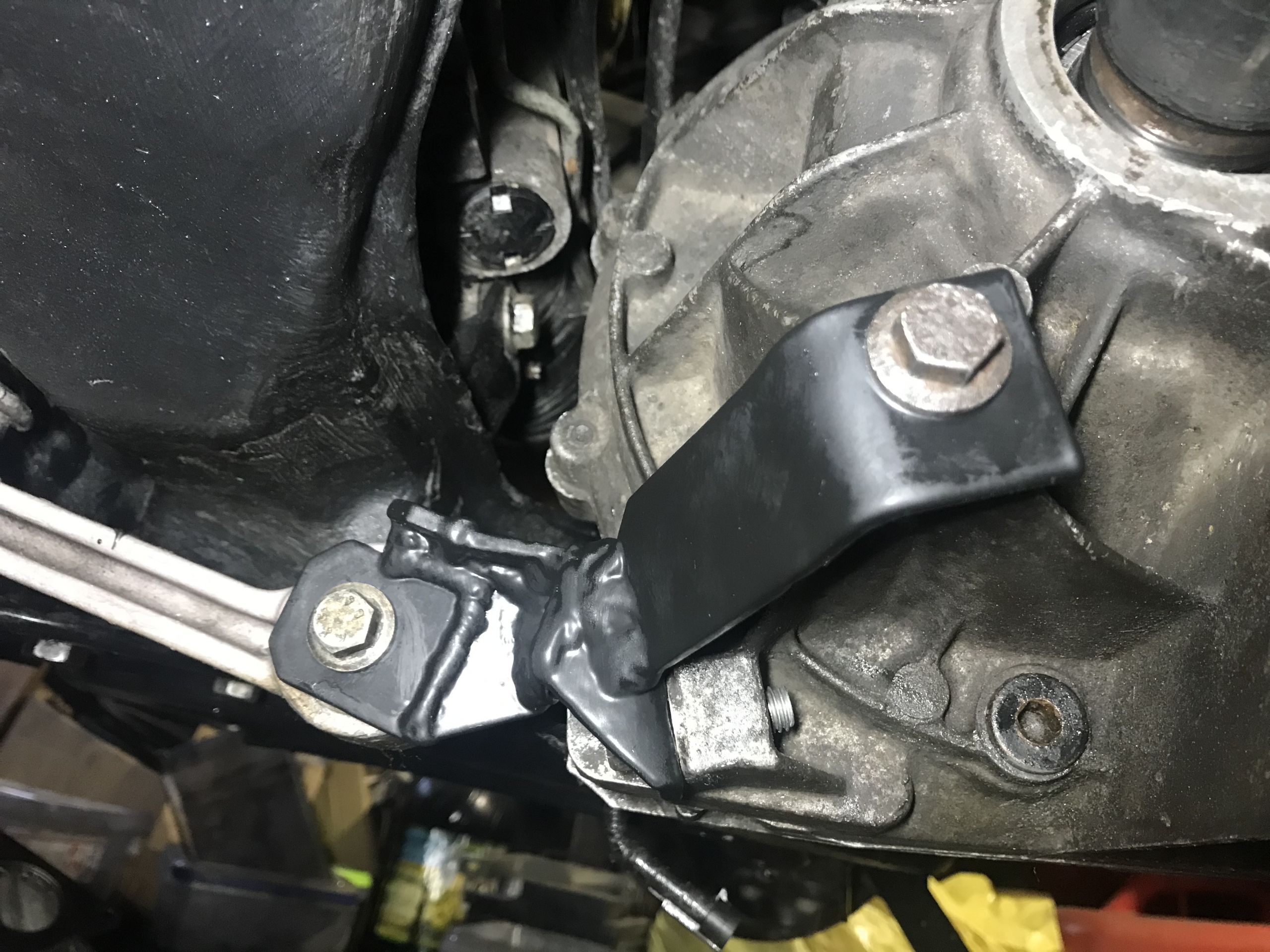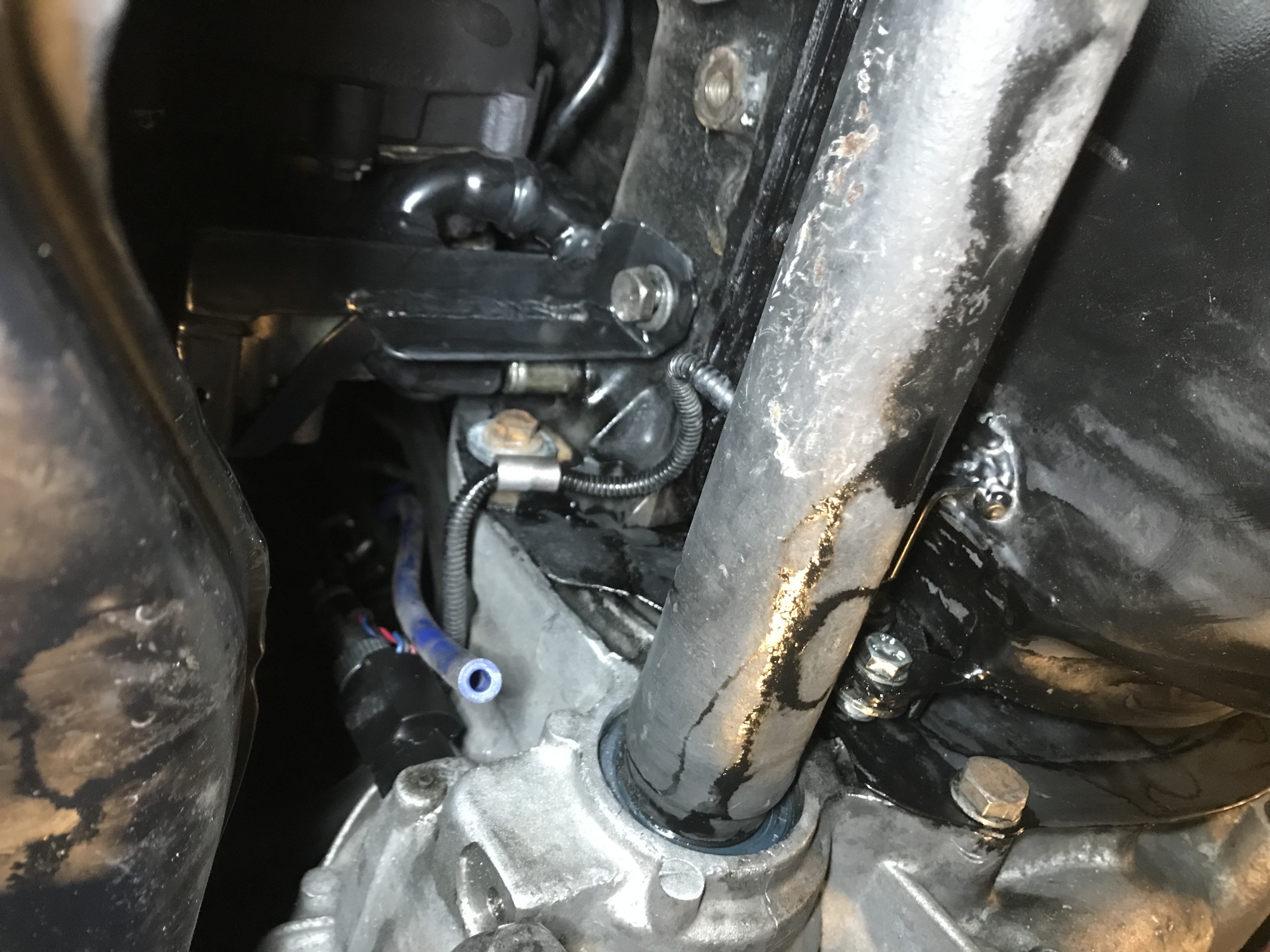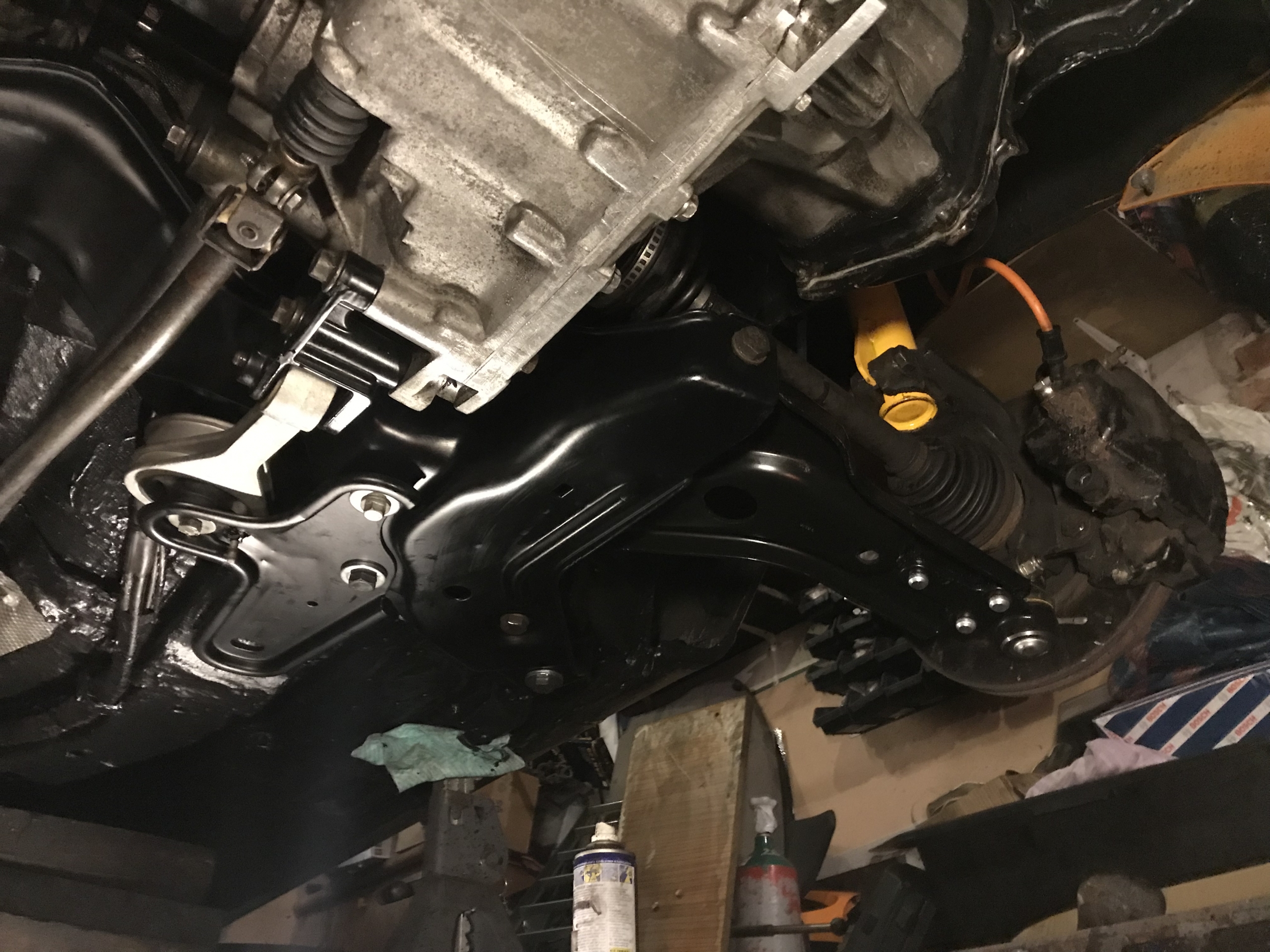 Pierwsza rzecz - zamach od MTXa jest grubszy, i ogólnie masywniejszy - więc już to powoduje że pozostaje mniej miejsca między silnikiem a podłużnicą podczas manewrowania skrzynią i jej zakładania. Silnik musiał pójść w dół.