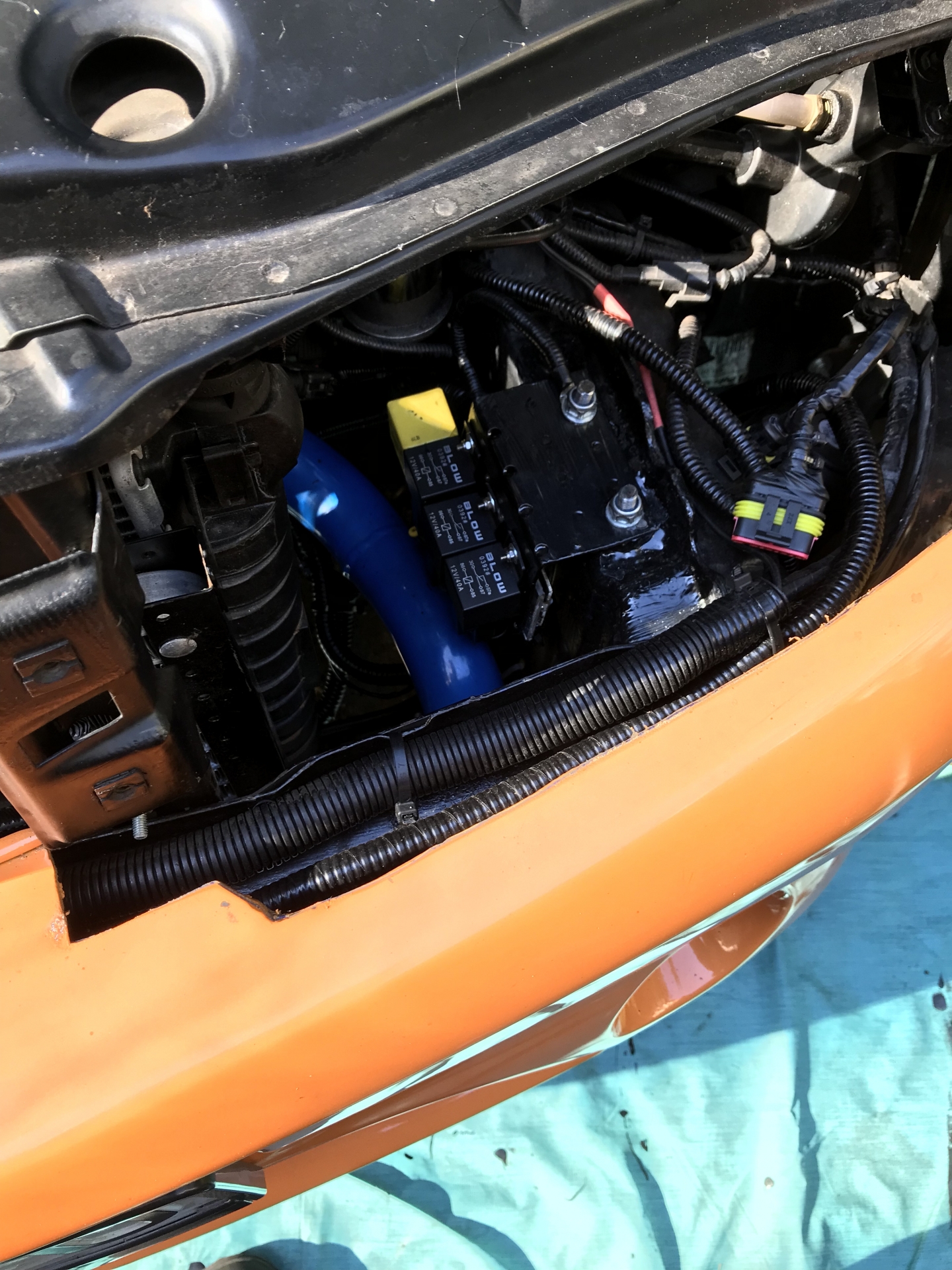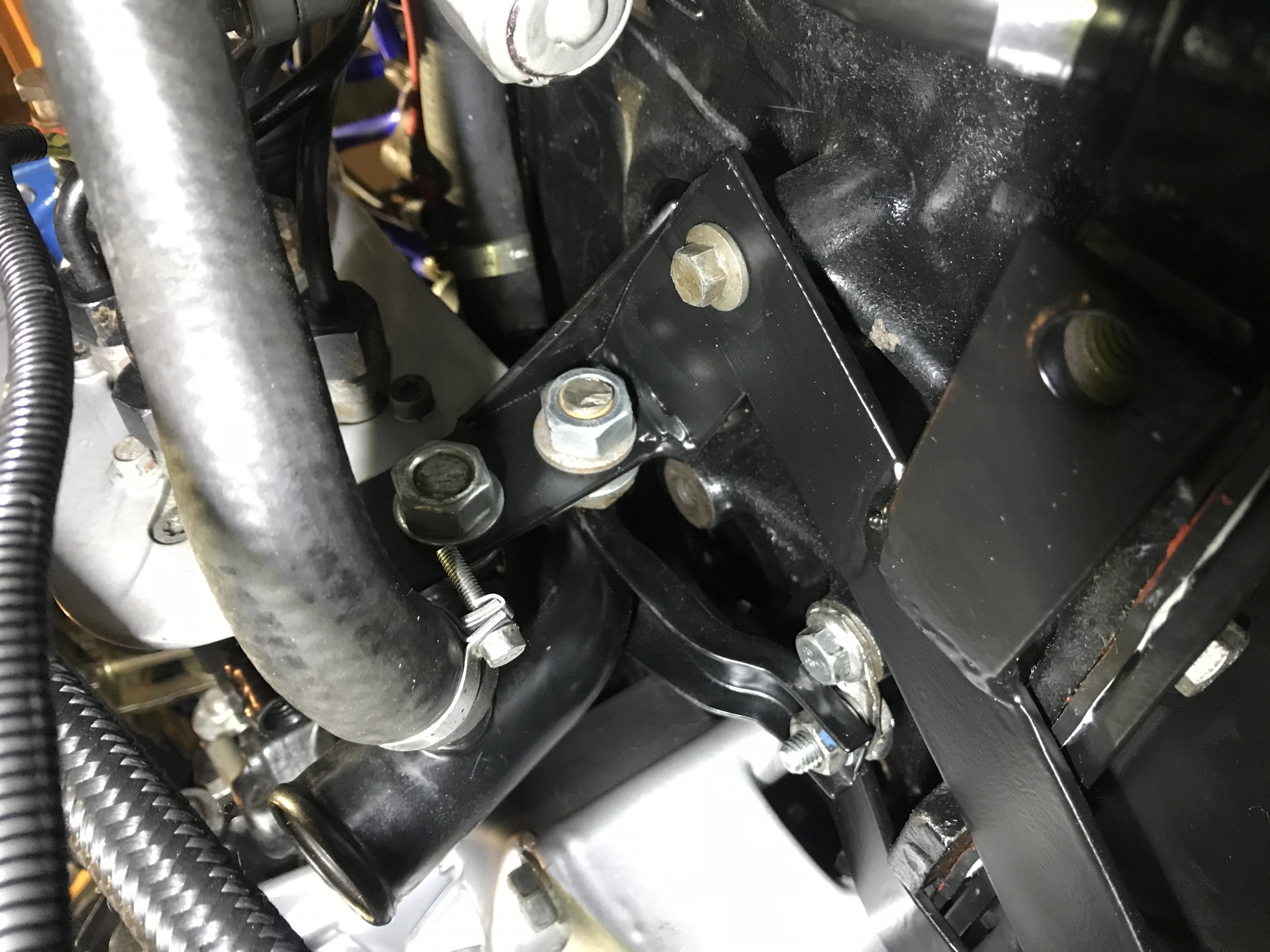 Założenie było ogólnie takie, by zawiesić MTXa na oryginalnych poduszkach, tak by maksymalnie ograniczyć rzeźbę. I mi się to udało, dzięki temu całość po otwarciu maski będzie wyglądać "normalnie".