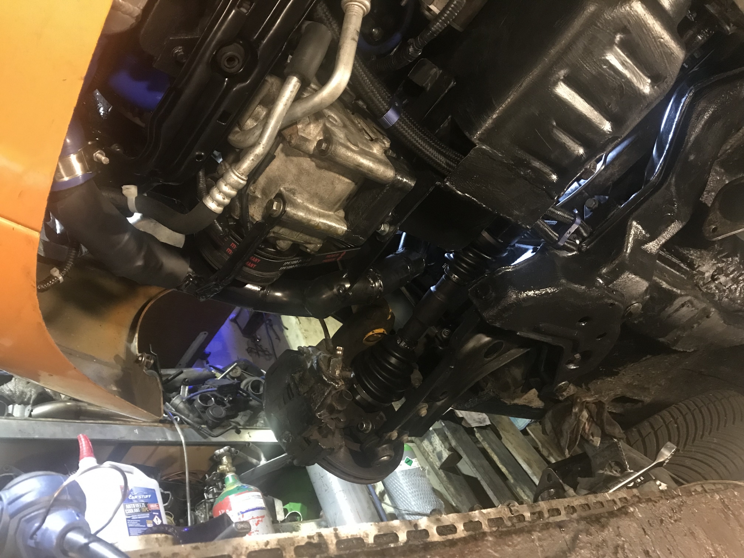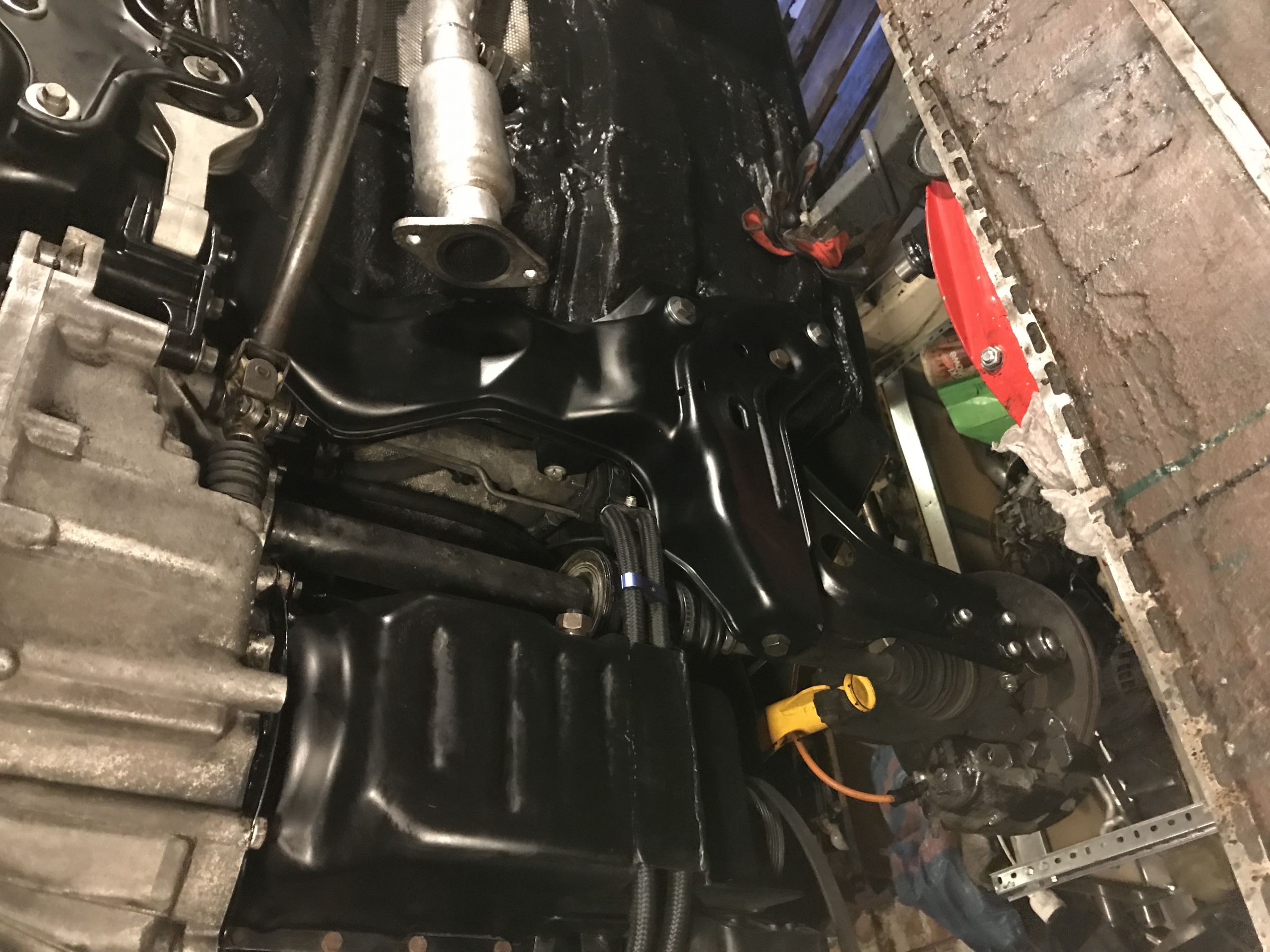 A tu rzut od spodu jak to wygląda już prawie poskładane - widać półośki na miejscu, nowy fmic idący dołem i "bokiem", a nie górą, bez zwężek jak poprzednio: