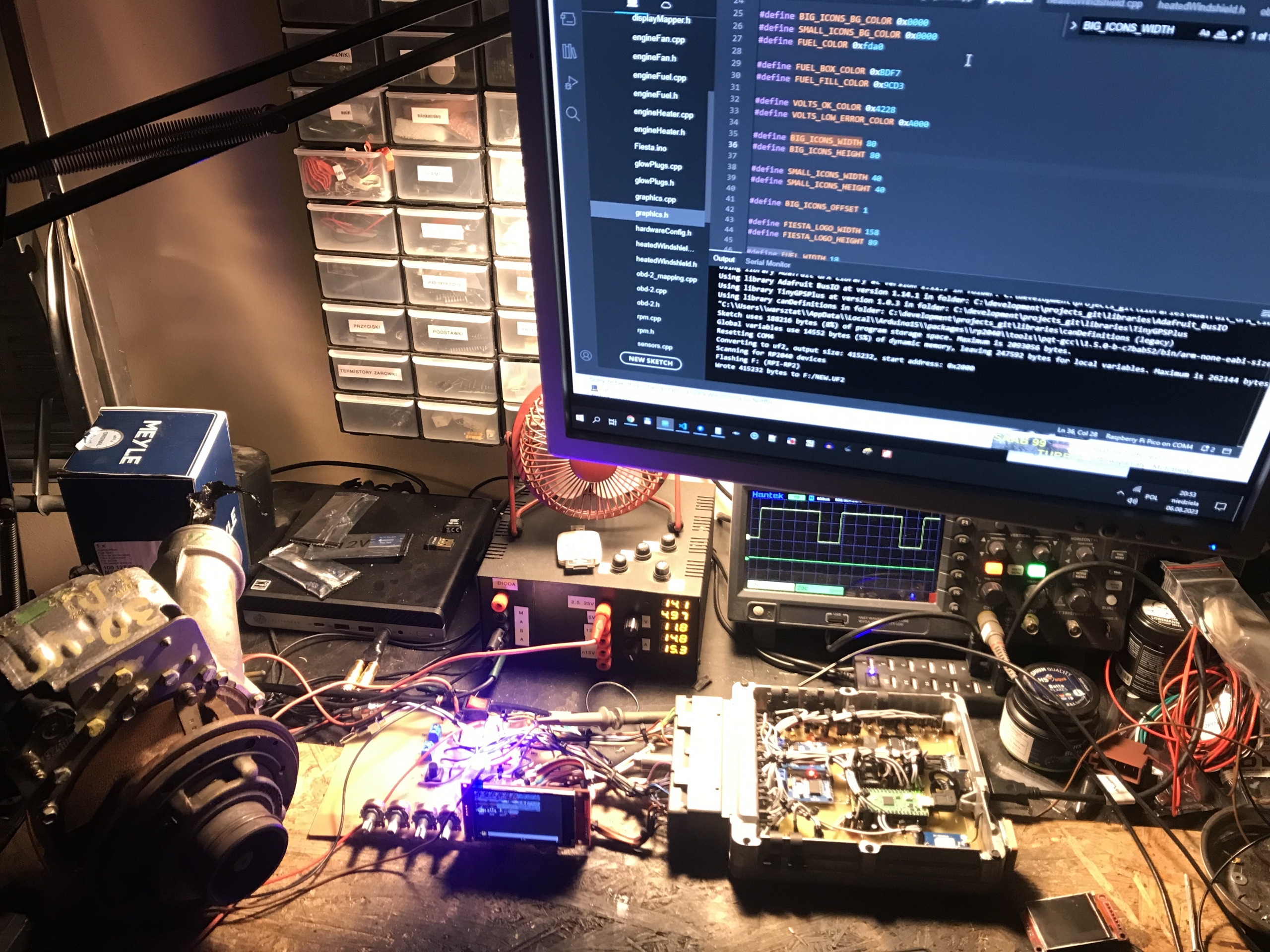 Na tym etapie mogę zacząć pierwsze testy z rozruchu silnika (testowego oczywiście) z pompą. Na początek tak, by trzymał stabilne obroty jałowe. A potem pójdzie już z górki