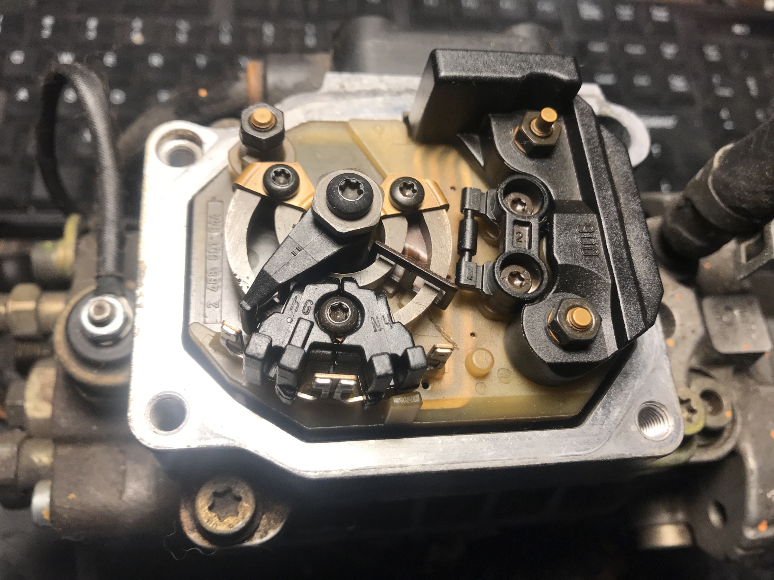 Szukałem info na ten temat, i nawet coś tam znalazłem. Bosch produkował specjalny układ scalony, który na podstawie indukcyjności generował napięcie. Czyli np. dla położenia spoczynkowego nastawnika było to 0V, dla połowy 2.5V, a dla maksymalnego wychylenia 5V.