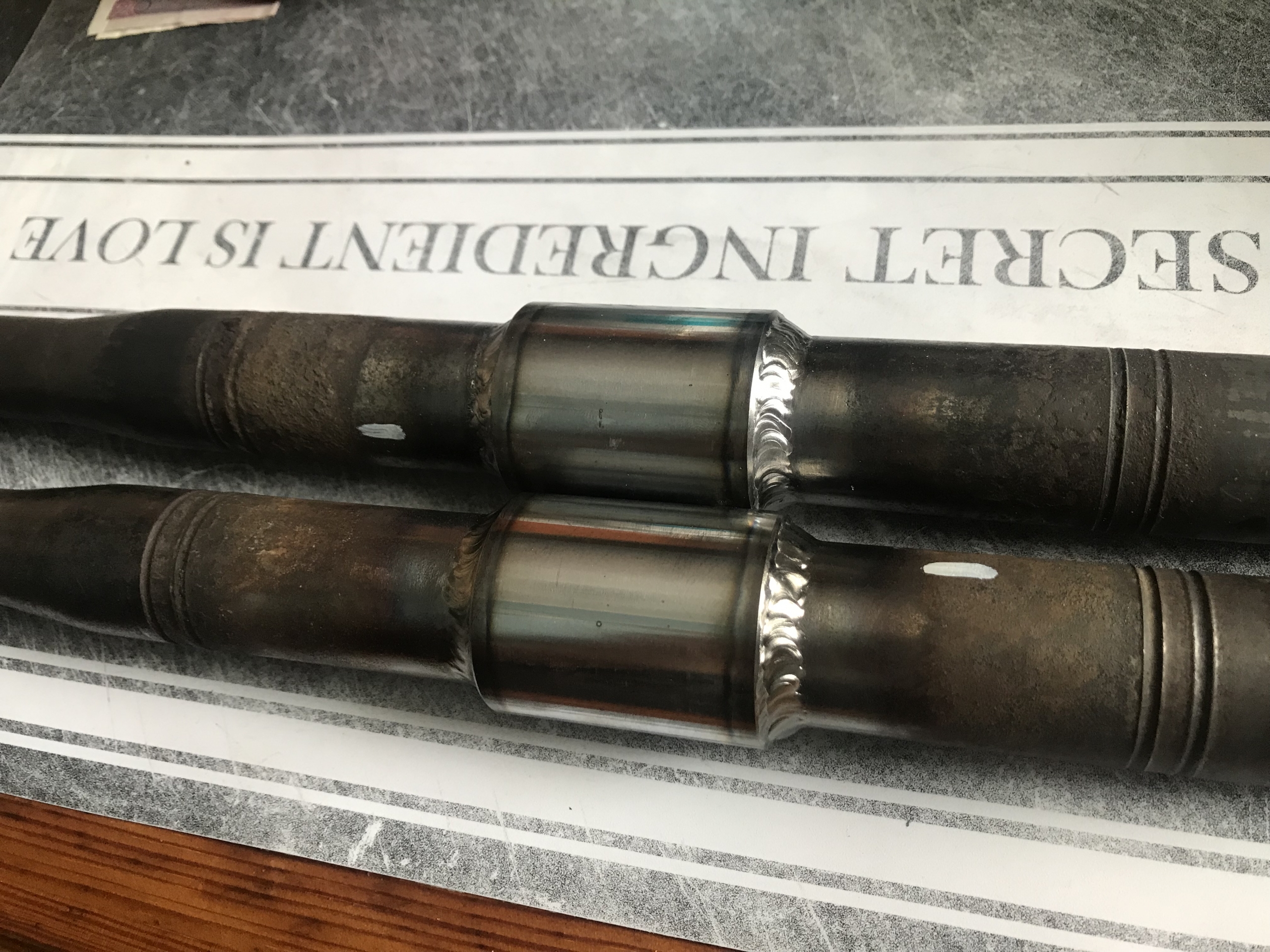Całość została zrobiona u ogarniętego tokarza/spawacza, sam się za to nie chciałem brać. Półośki zostały przecięte, krawędzie splanowane, następnie obie części zostały wbite na tulejkę "na ciasno". Potem było dwa razy spawane (spaw/szlif/spaw).W trakcie pracy sprawdzalii na maszynie celem stwierdzenia czy nie ma bicia.