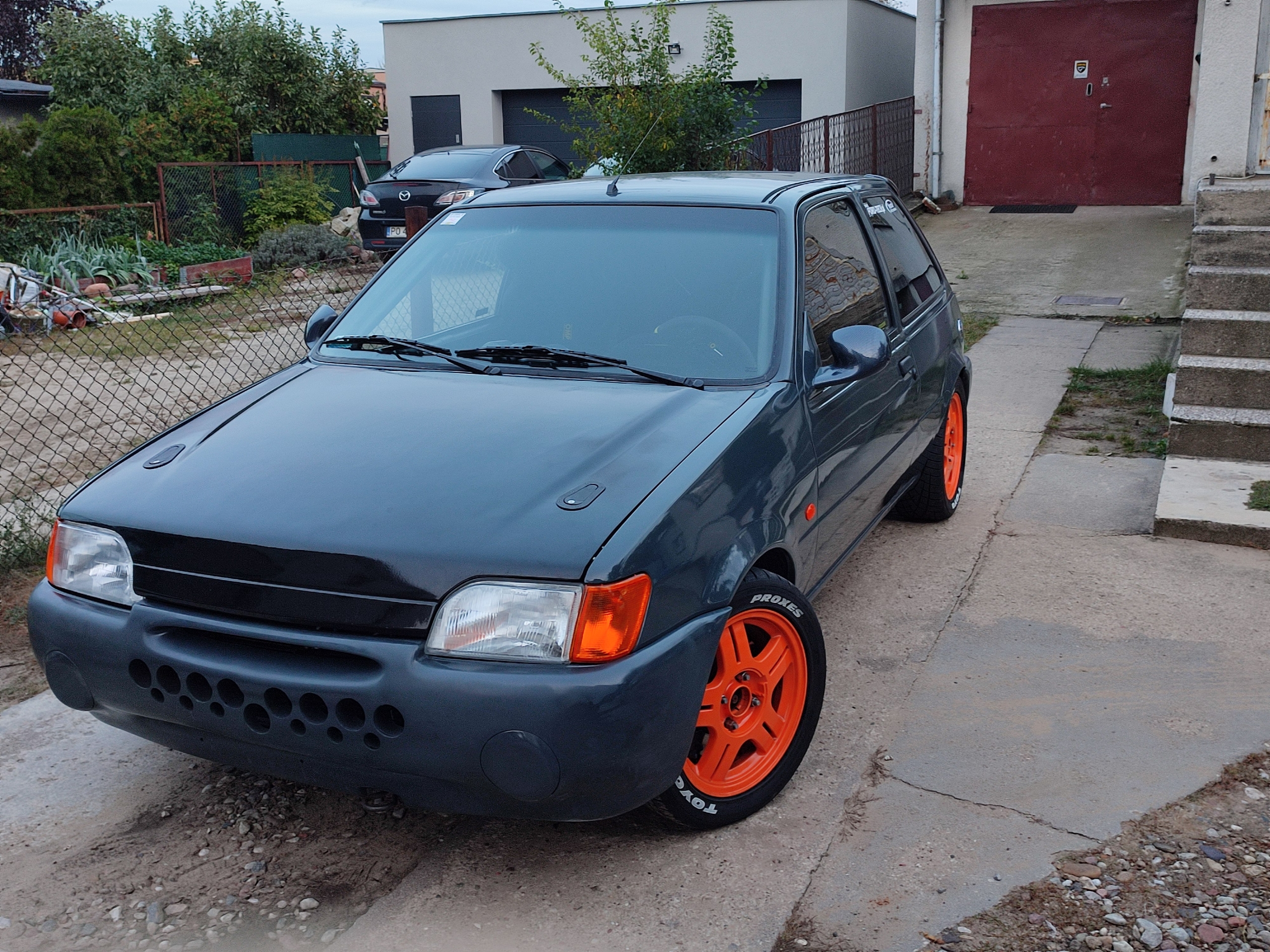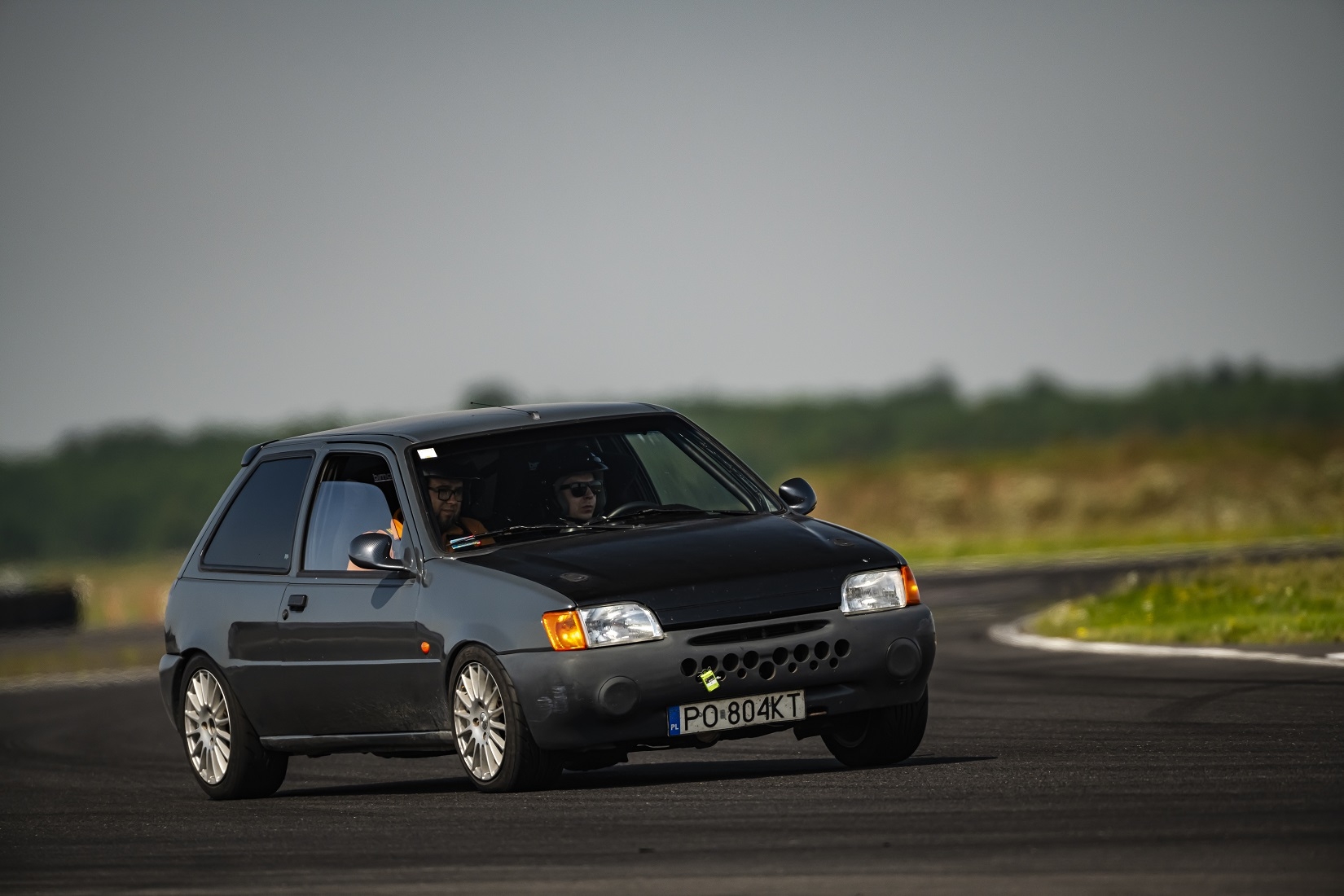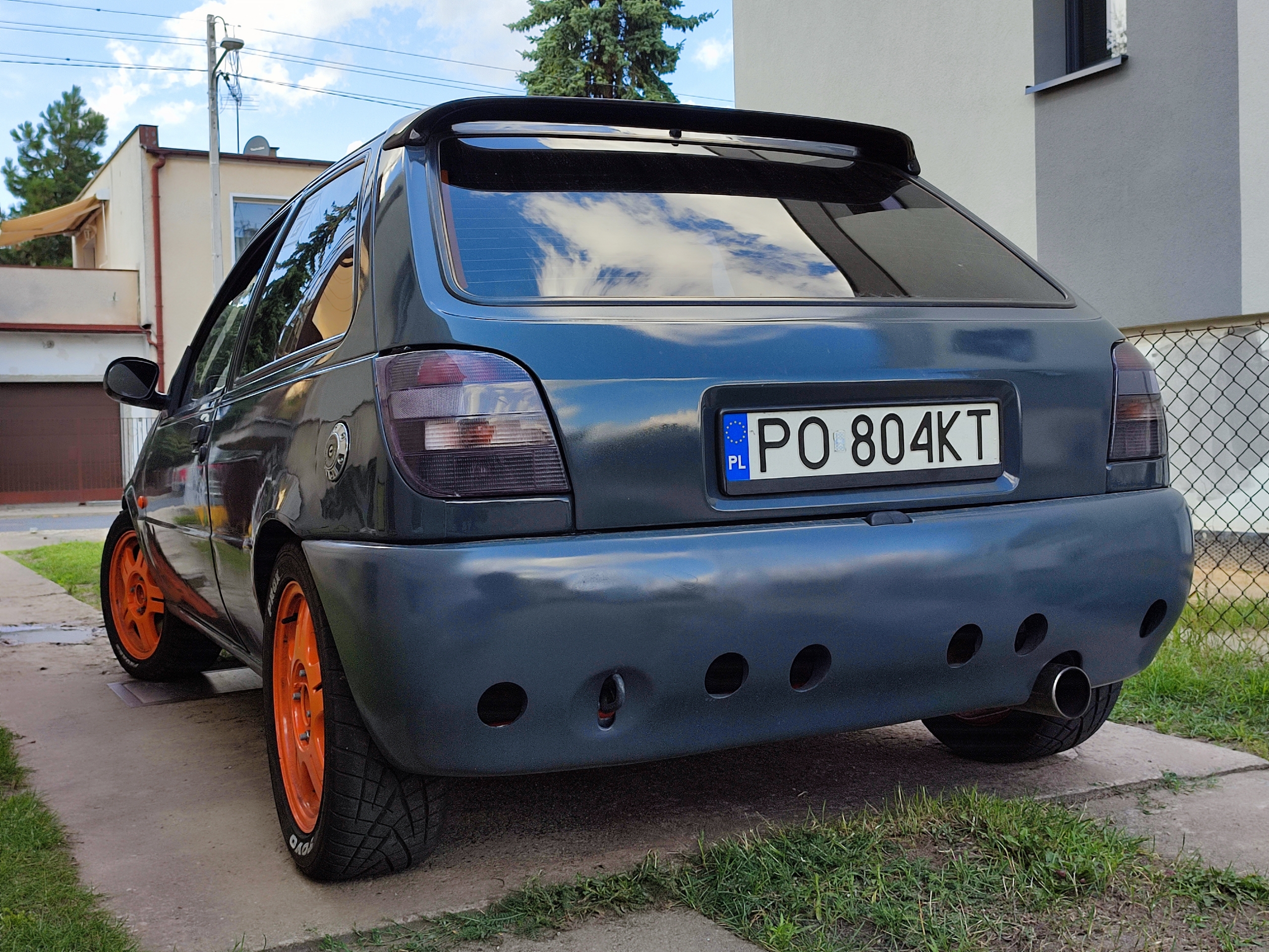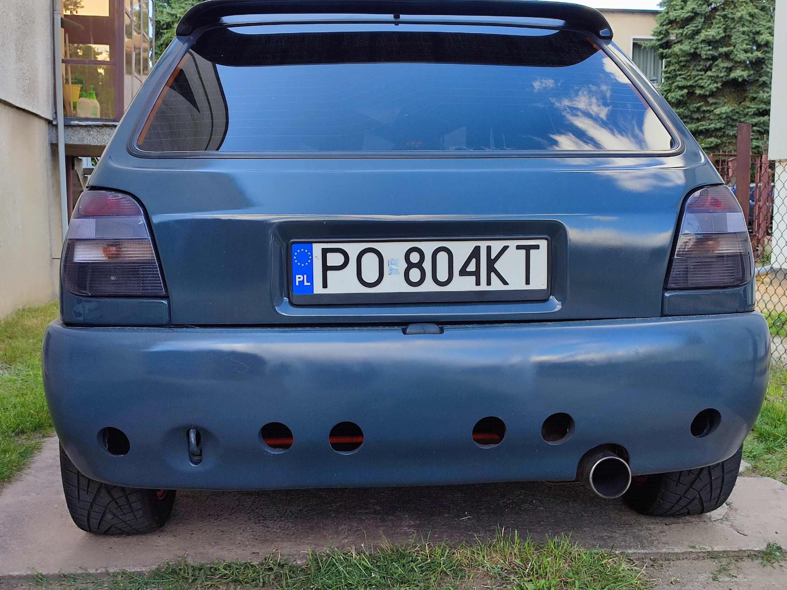 W aucie na szybko w tygodniu przed spotkaniem zrobiłem otwory w tylnym pasie i zderzaku, żeby uwolnić zbierające się tam powietrze, zderzak na testy psiknąłem sprayem w kolor nadwozia, żeby zobaczyć czy taki będzie mi pasował, zastanawiam się