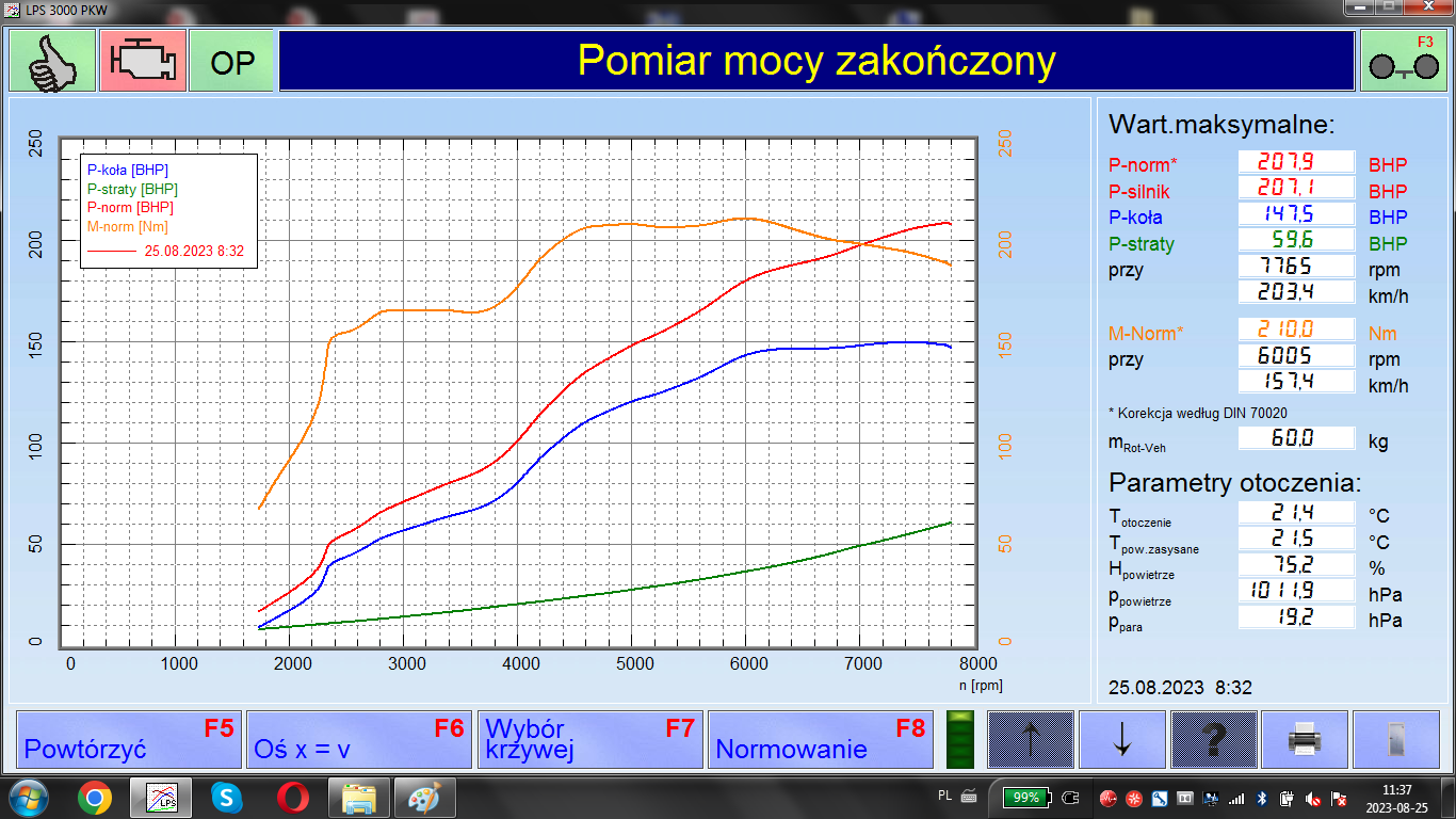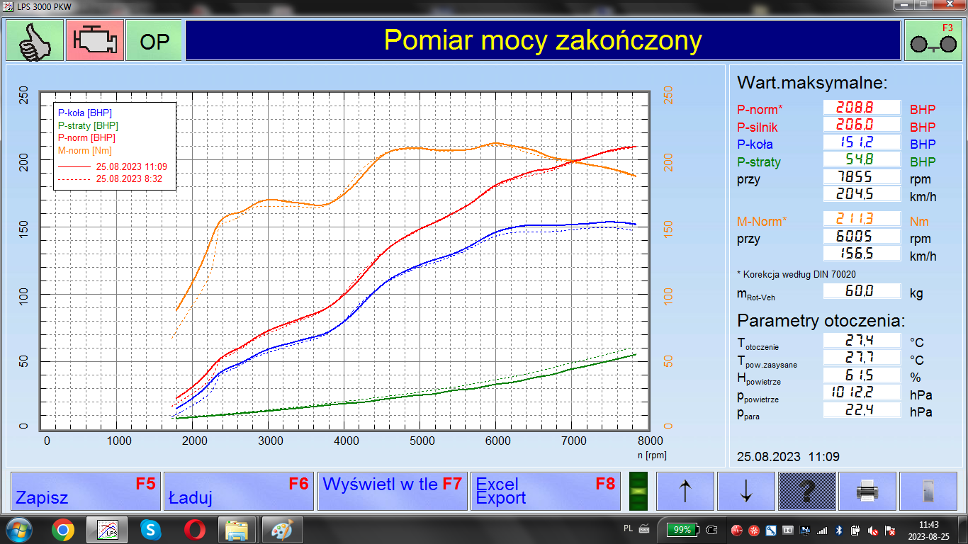 Najlepszy pomiar gdyby był wykonany w tych samych warunkach co referencyjny to pewnie byłoby ok 212-215 koni i 216 Nm, przy którymś pomiarze było już 213Nm
