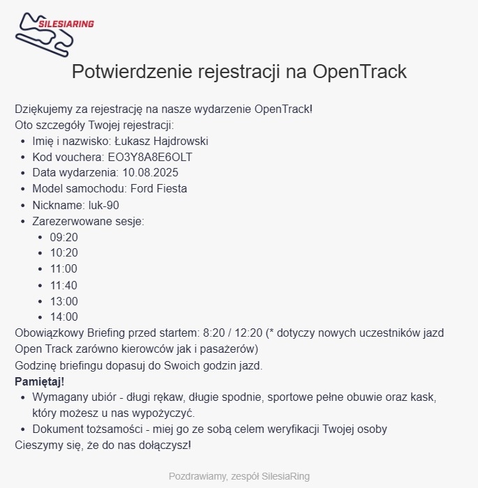 Ustaliłem z Bobsonem pasujący termin na 10.08 na Open Track na torze Silesia, niedziela.